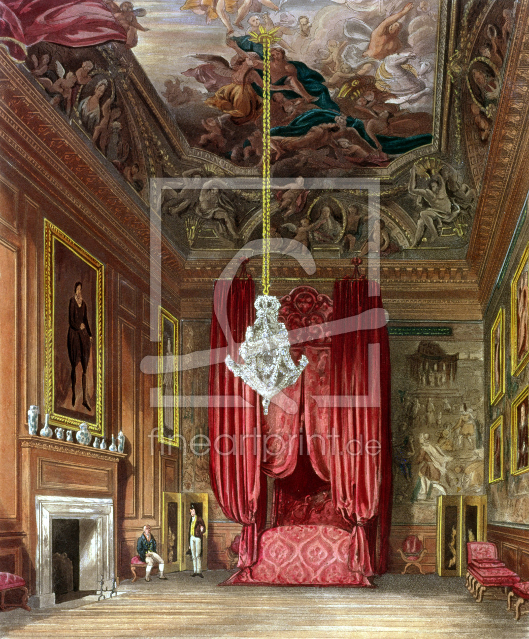 Queen Mary's State Bed Chamber, Hampton Court from Pyne's 'Royal Residences', 18