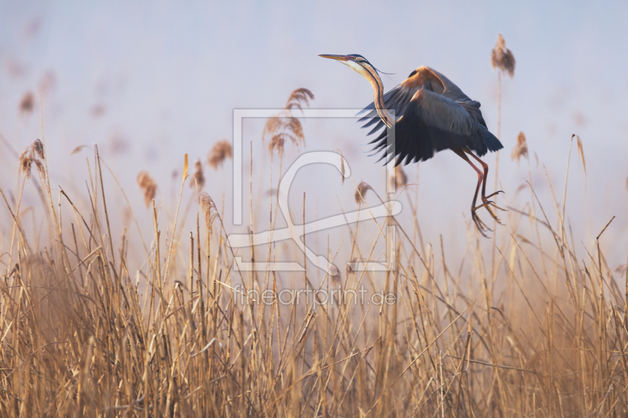 Purpurreiher im Nebel