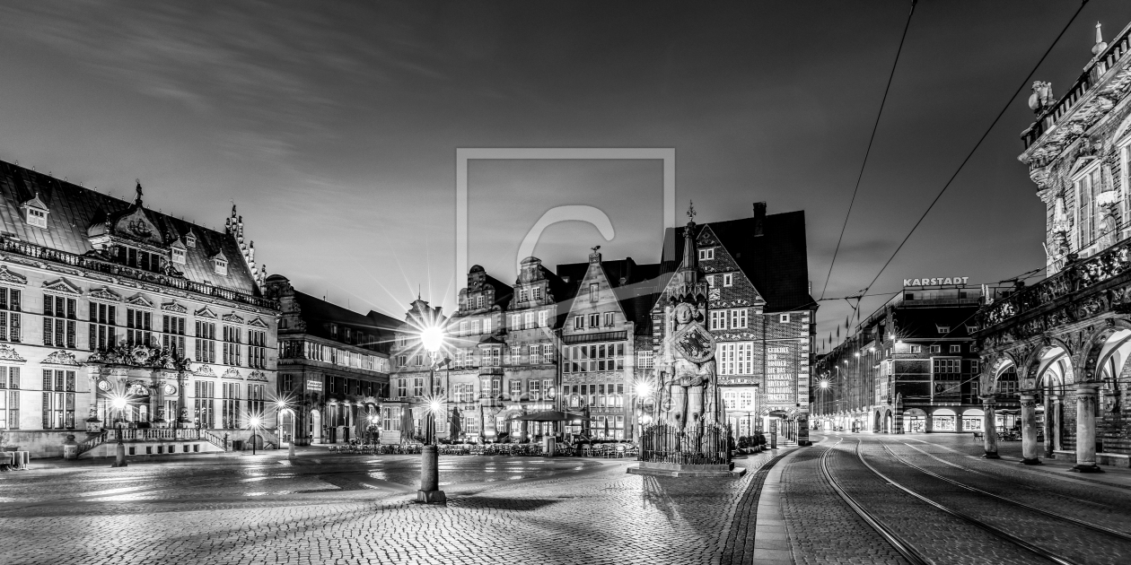 Panorama Marktplatz in Bremen - Schwarzweiss