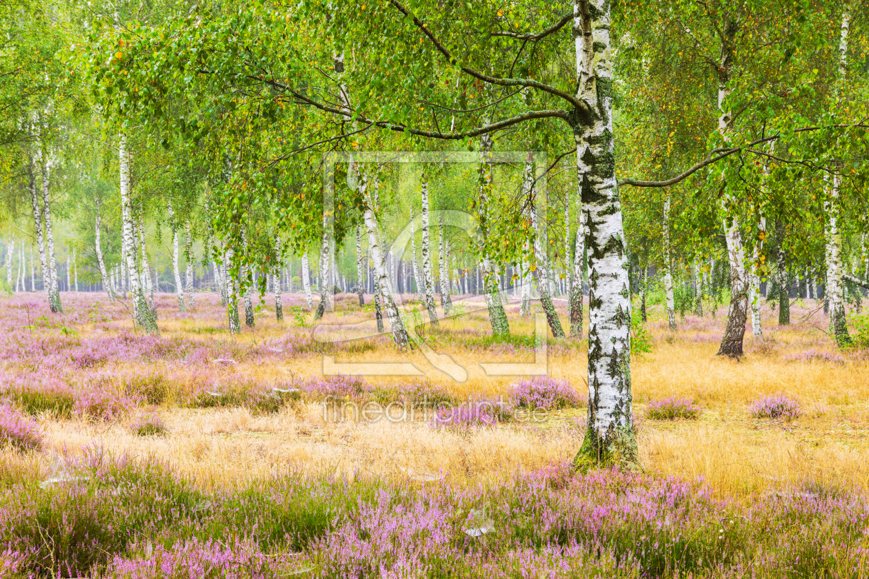 Heide und Birken im Abendlicht