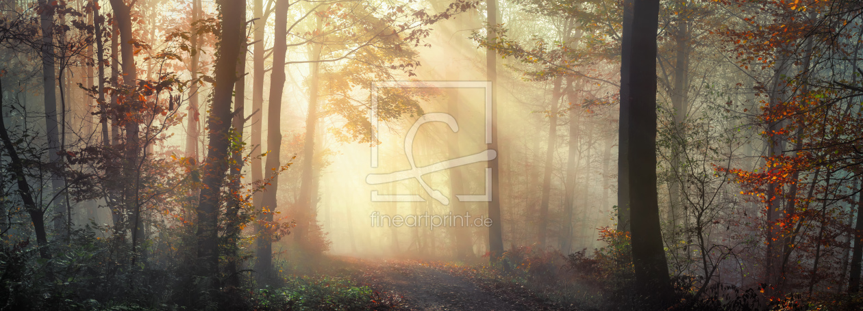 Schöne sonnige Stimmung im nebligen Herbstwald