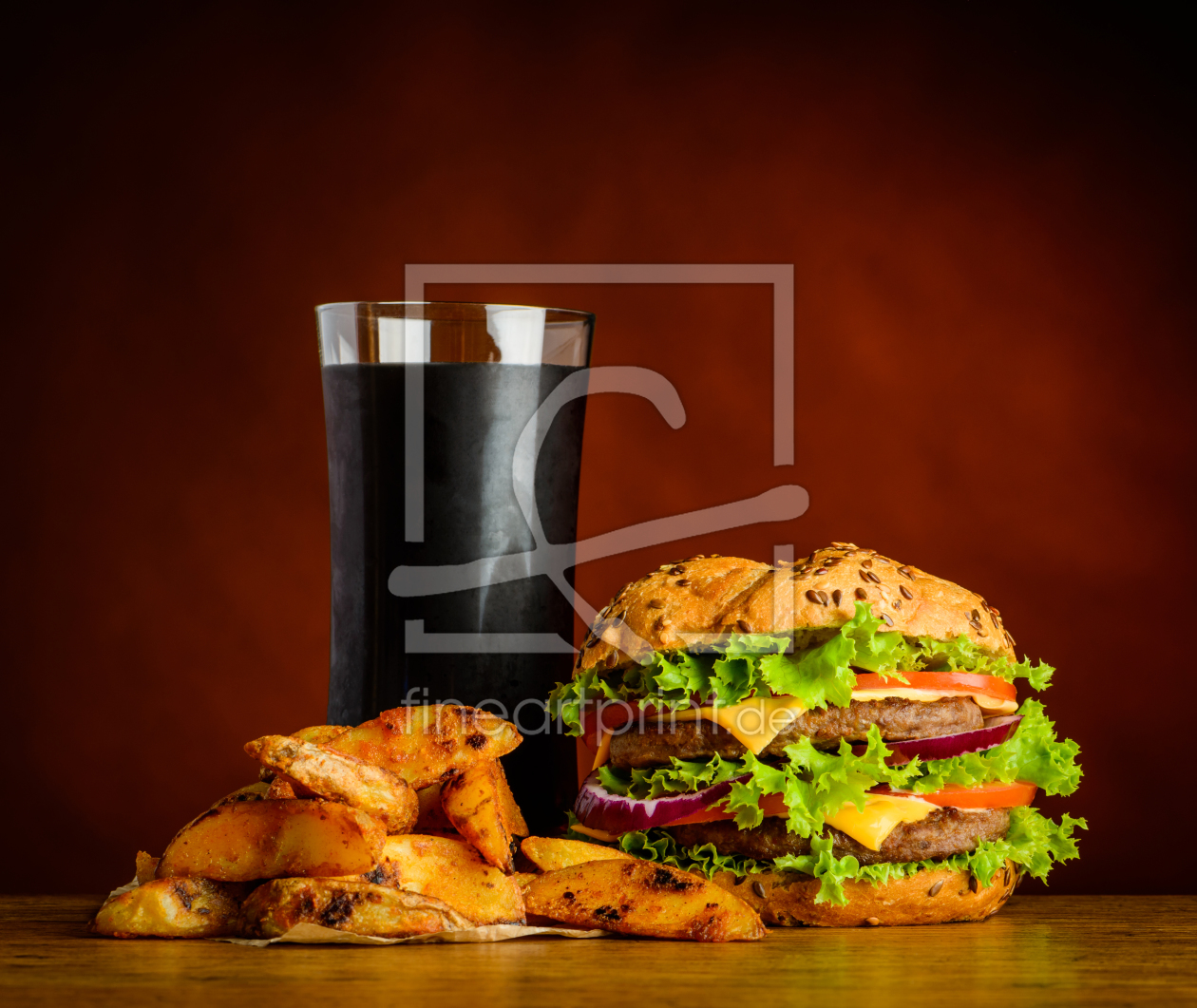 Cola mit Burger und Pomes