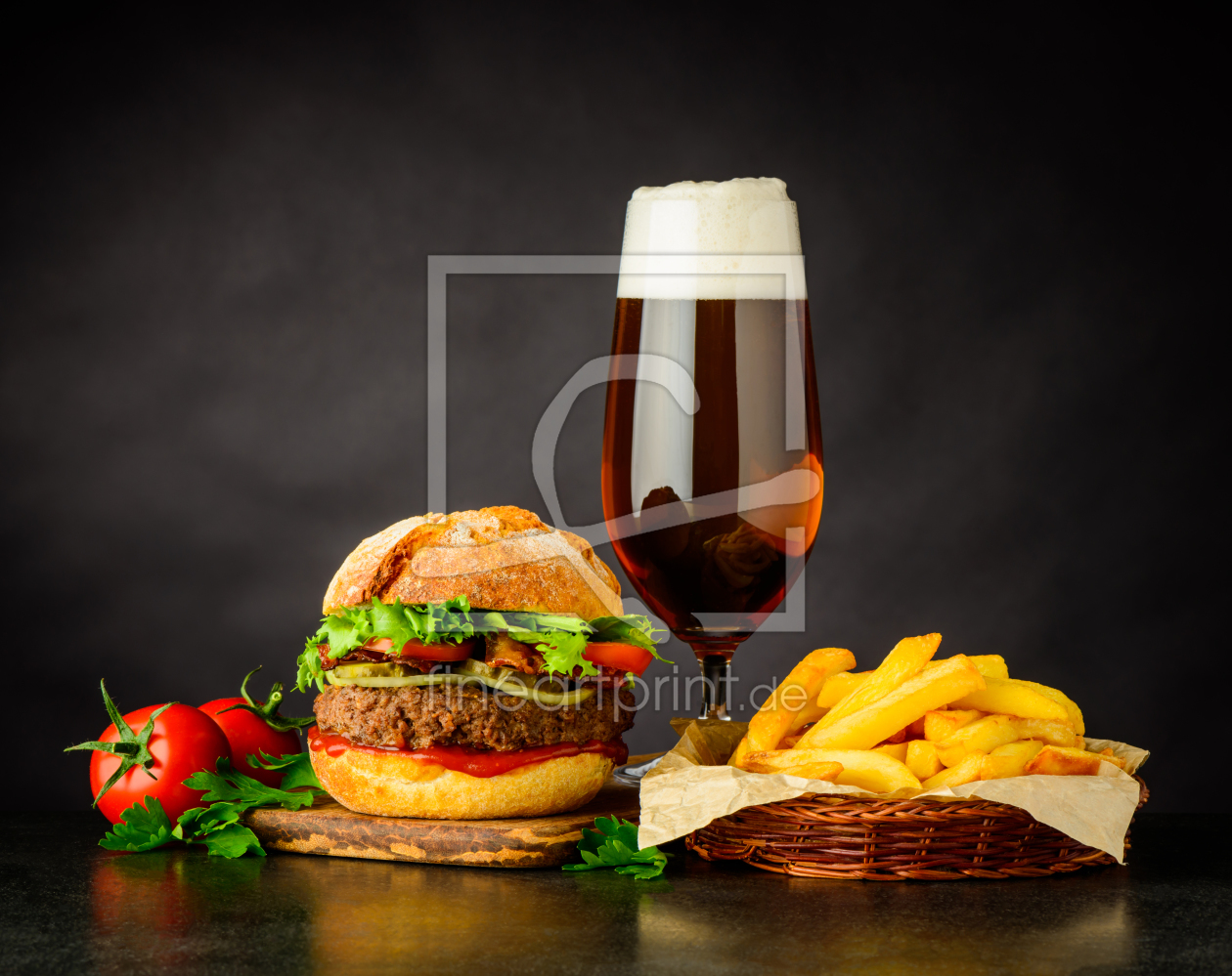 Bild-Nr: 11918144 Stillleben Bier mit Burger und Bratkartoffeln Erstellt von: xfotostudio
