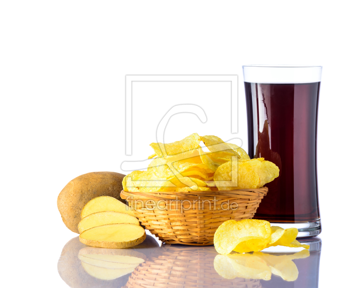 Cola mit Kartoffelchips auf Weiß Hintergrund