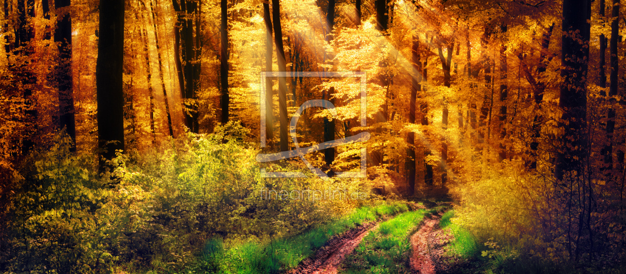 Bild-Nr.: 12150442 Lichtstrahlen fallen auf herbstlichen Waldweg erstellt von Smileus