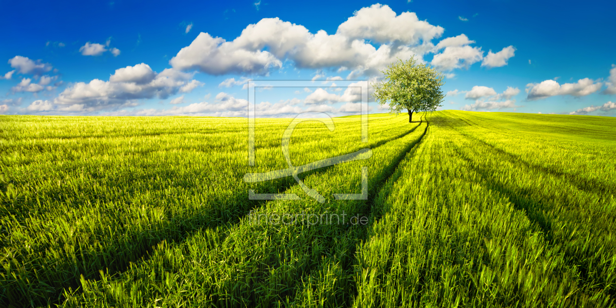 Einsamer Baum auf sonnenbeschienener Wiese