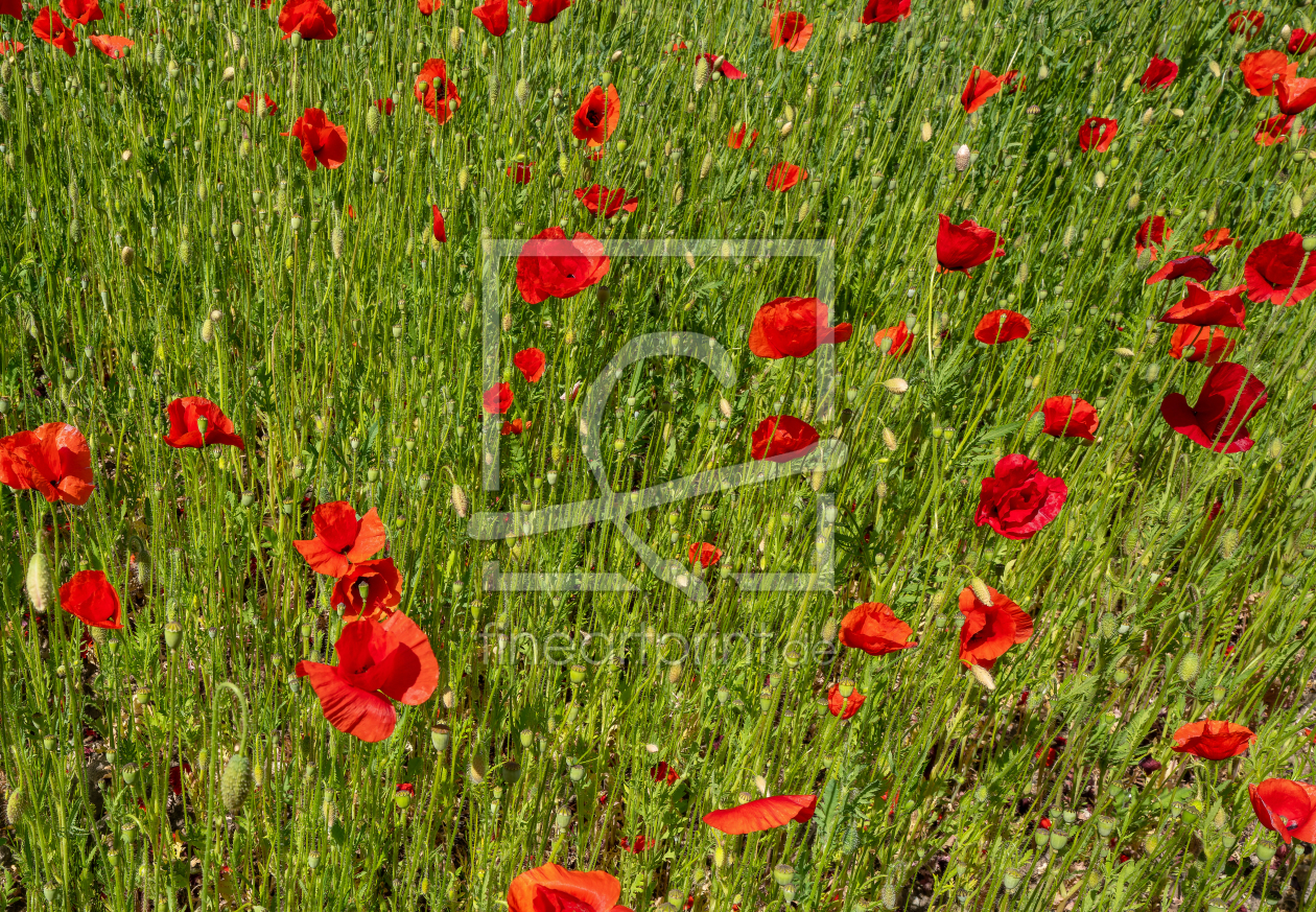 blühender roter Klatschmohn auf einem Hügel