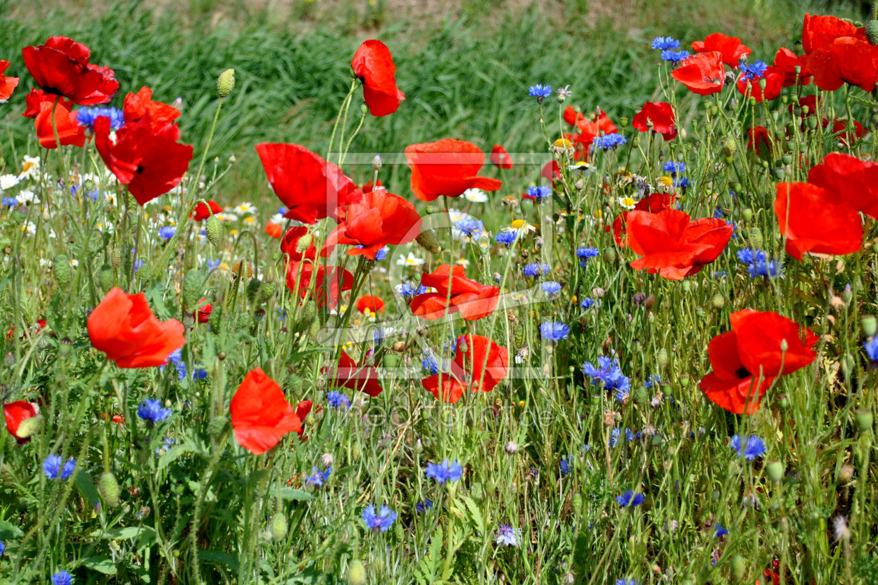 Mohnblumen und Kornblumen und Kamille