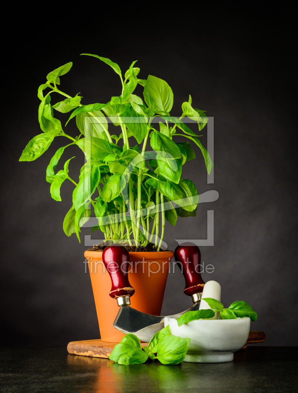 Stillleben mit Basilikum Pflanze im Blumentopf