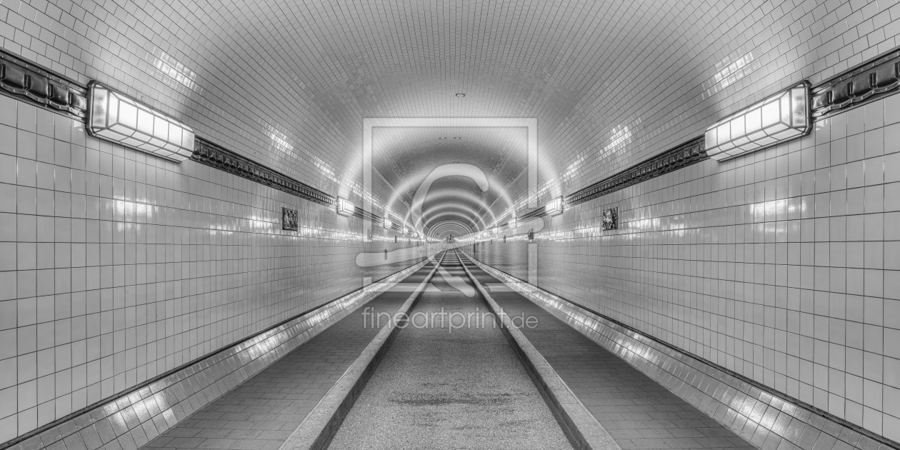 Alter Elbtunnel in Hamburg Panorama schwarz-weiß