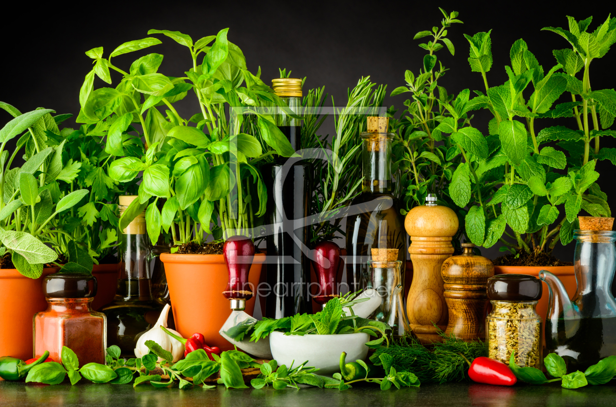 Stillleben mit Kräuter und Kochzutaten