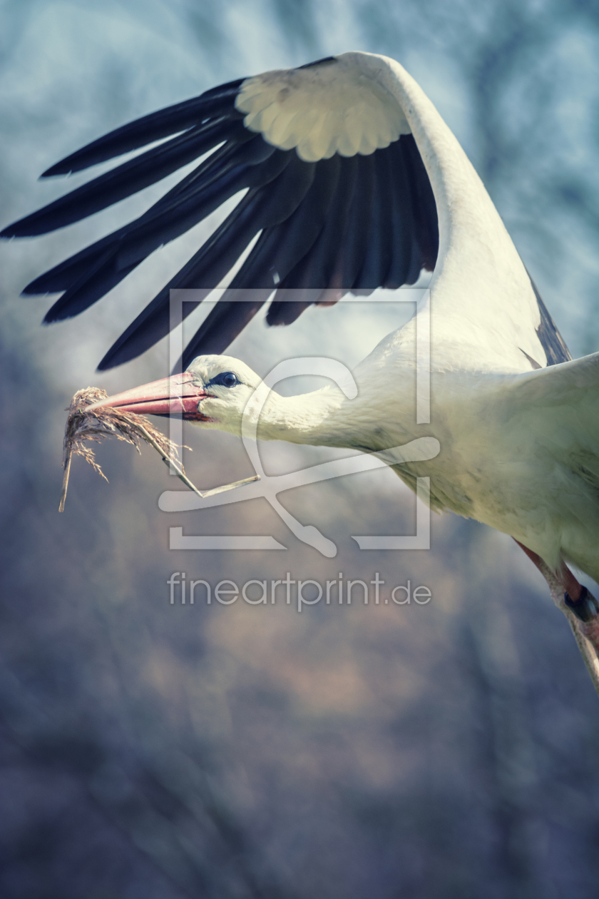 Storch im Flug zum Nest