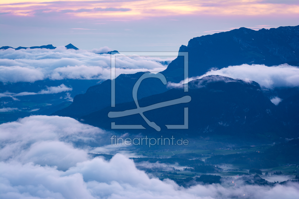 Kaisergebirge im Sonnenaufgang über Nebelme...