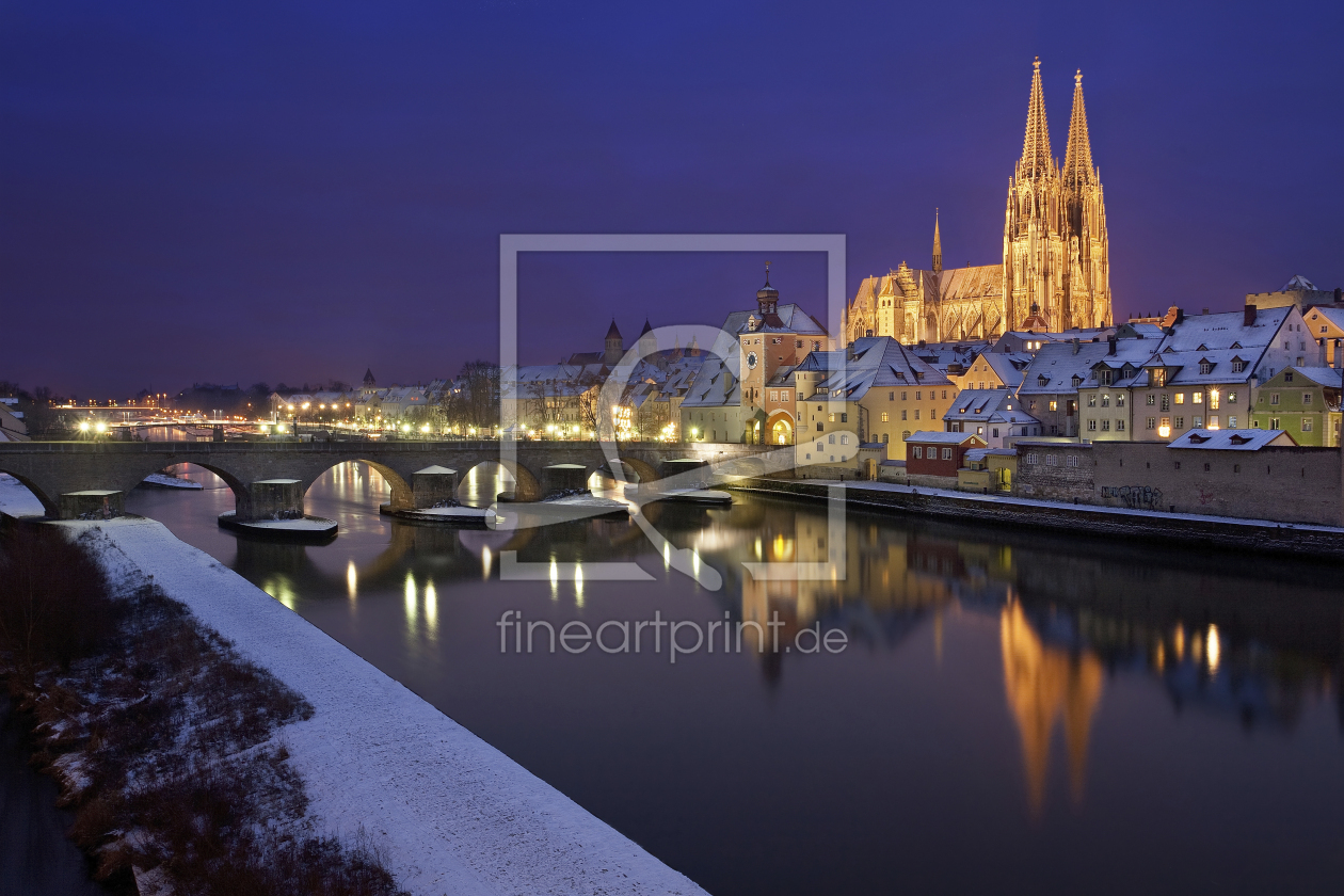 Regensburg im Winter zur blauen Stunde
