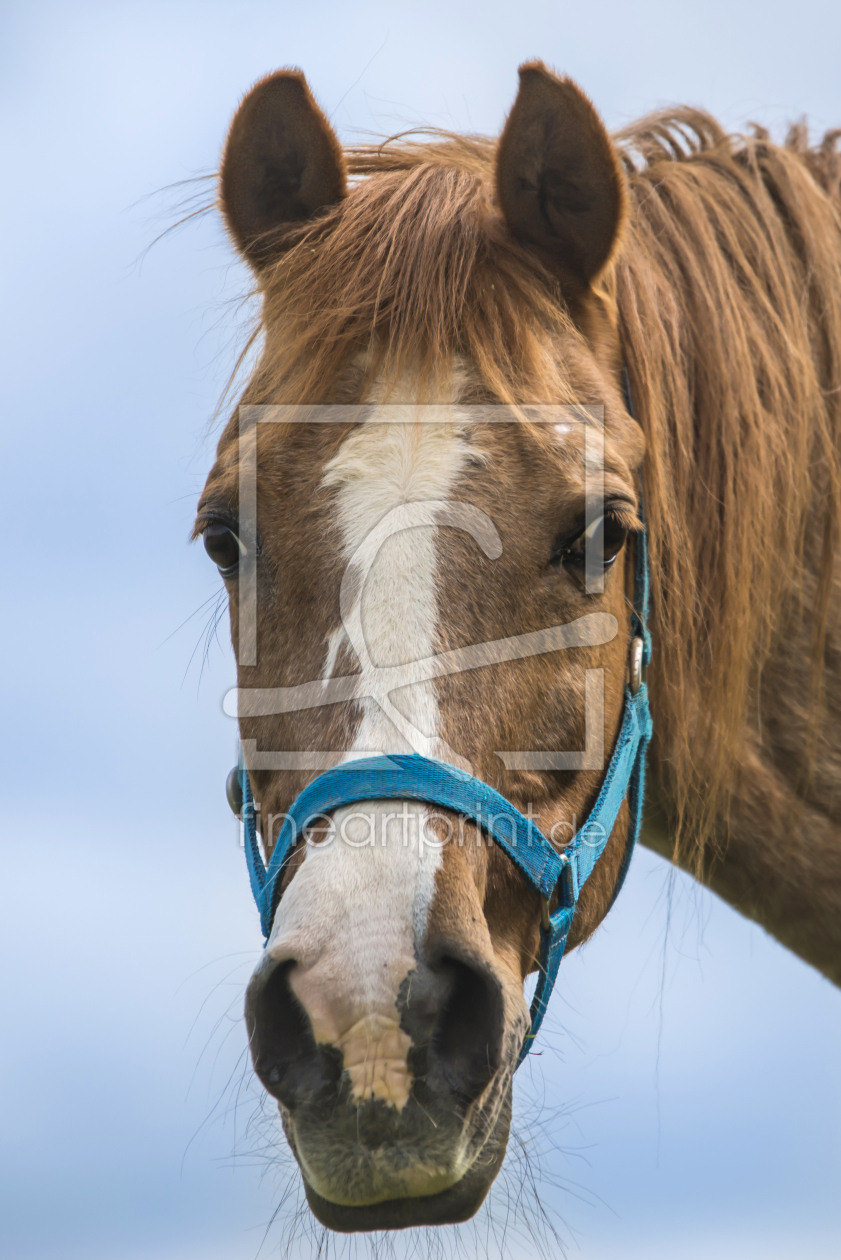 Pferde-Portrait vor Himmel.