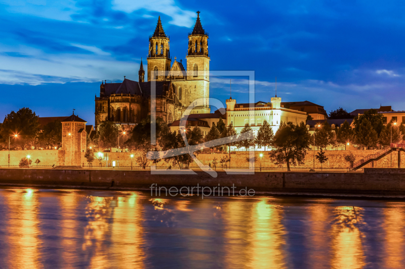 Magdeburg mit Dom und Fürstenwall am Abend