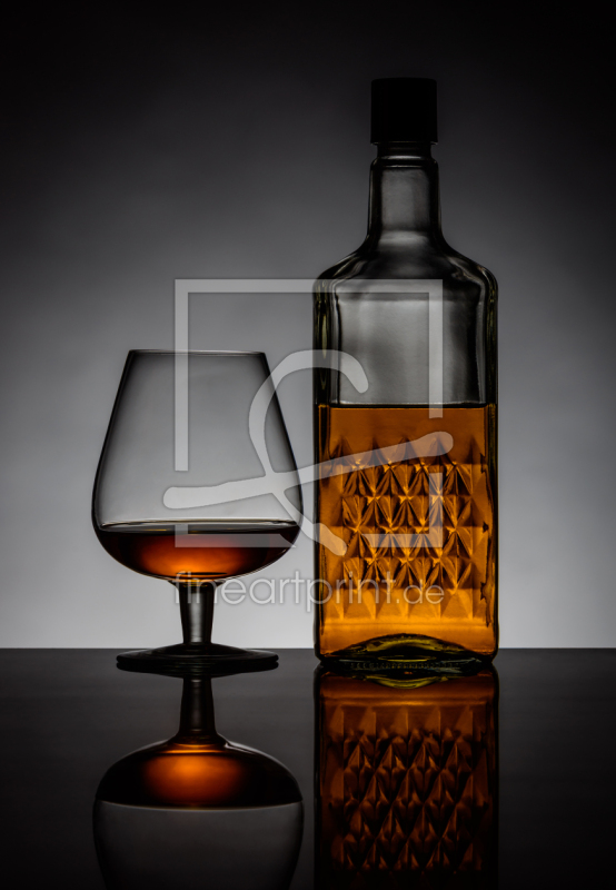 Stillleben Weinbrand Glas und Flasche