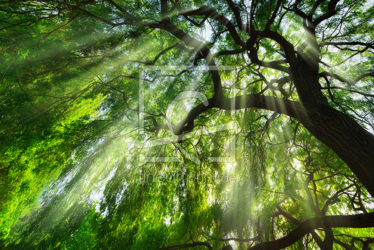Lichtstahlen fallen durch majestätischen Baum