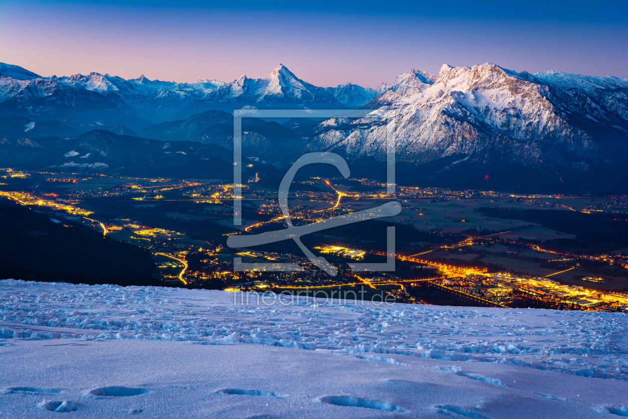 Blick über Salzburg zum Watzmann im Winter