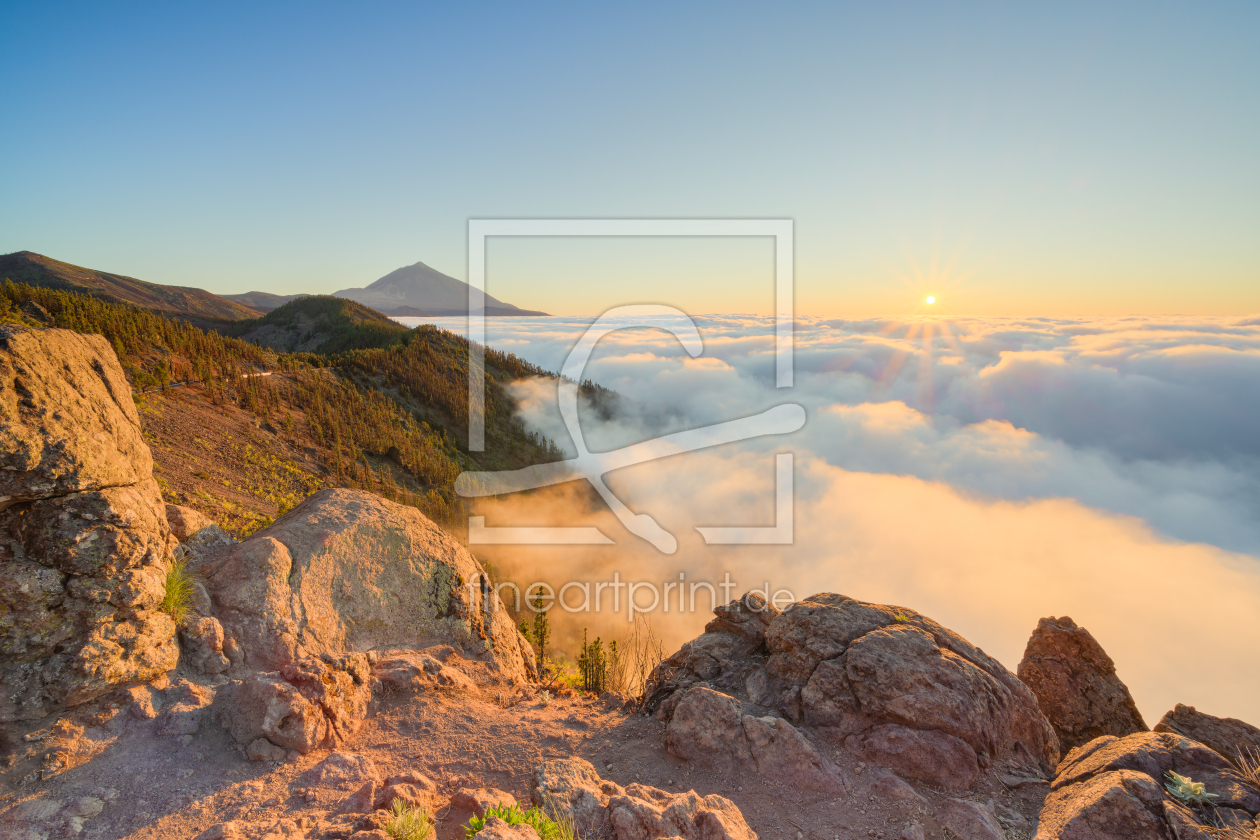 Teneriffa Roque Cinchado und Teide im Morgenli...